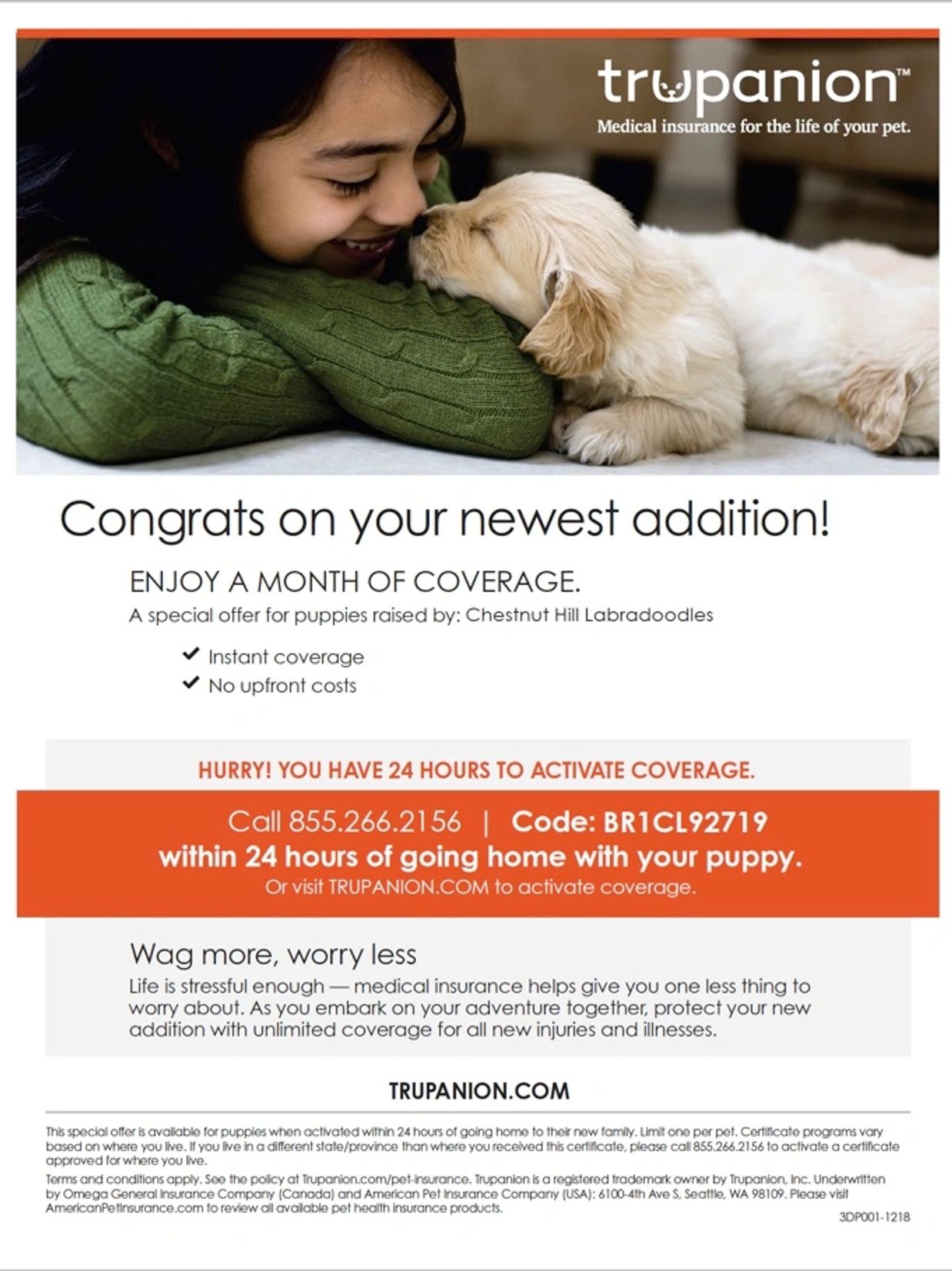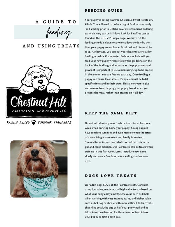 SAVE 20% ON YOUR FIRST ORDER. CODE: INTRO4U. Families must order a bag of food before puppy pickup day. We recommend ordering at least a week early to be sure you are prepared.