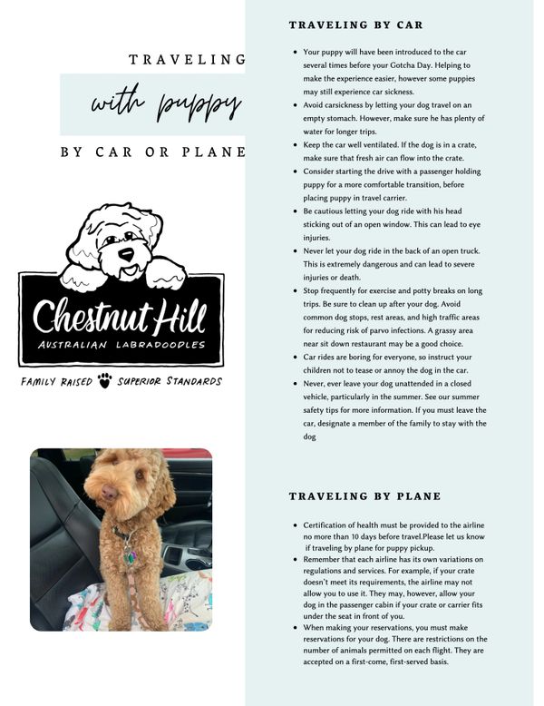 A HARD TRAVEL CRATE IS EASIER TO CLEAN THAN A SOFT CRATE FOR CAR TRAVEL. PUPPY BACKPACKS ARE A GREAT HAND-FREE OPTION FOR AIR TRAVEL. WIRE KENNEL/CRATE FOR SLEEPING- SIZES 32" FOR SMALL MINIS, 36" LARGE MINI-MEDIUMS, 40-48" LARGE MEDIUMS-STANDARDS.