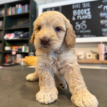 Rolly is from Willa Gray & Hudson. He is expected 25-30lbs. He is happy, confident, with a polite and playful disposition. He scored very high on the temperament test for a potential service, therapy, or facility dog. Rolly is scheduled to complete the Advanced Puppy Training. He will be ready for a family in December. Rolly handles social environments very well and will make an excellent companion. If you are interested in this boy, please submit a puppy application. DOB 6/15/25.